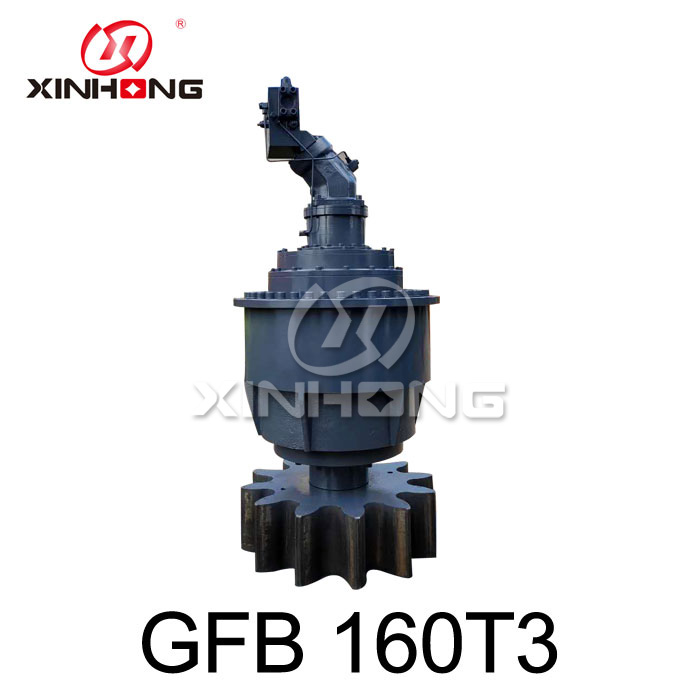 Ten reduktor prędkości hydraulicznej do obrotu obejmuje kilka zestawów biegów planetarnych, który składa się z sprzętu przeciwsłonecznego (środkowy bieg), kilku biegów planetowych i biegu pierścieniowego, które obracają się między sobą. Obciążenie z biegu słonecznego jest dystrybuowane na wiele przekładni planetarnych, które można zastosować do uruchomienia zewnętrznego pierścienia lub wału lub wrzeciona. Środkowe koło przeciwsłoneczne z redukcją prędkości hydraulicznej do obrotu może zmienić wysoką prędkość i niski moment obrotowy z silników hydraulicznych lub silników elektrycznych na niską prędkość i wysokie wyjście momentu obrotowego. Ten reduktor prędkości hydraulicznej do obrotu jest szeroko stosowany w napędach koła, obliczonych dyskach, dyskach wciągarskiej, dyskach torowych i głowica noża.